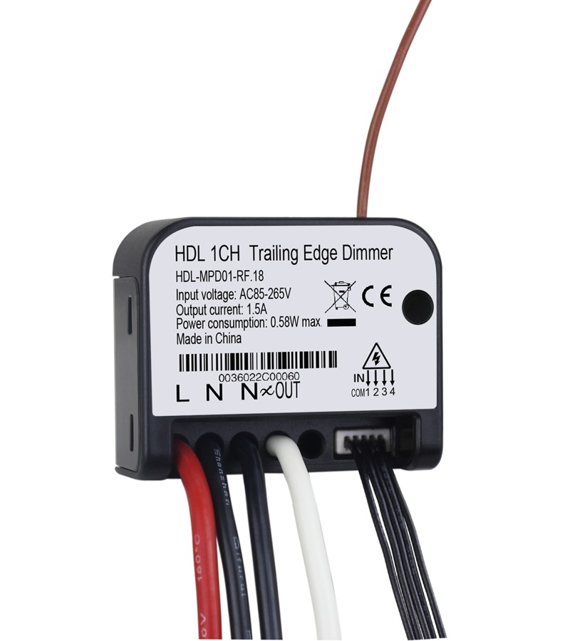 HDL-MPD01-RF.18 1 kanálový bezdrátový stmívač 1 kanálový bezdrátový stmívač, 1 kanál stmívače MOSFET max. proud 1,6 A, řízení scén a sekvencí, 4 vstupy bezpotenciálových kontaktů, napájení 85-265 VAC, 50/60 Hz, vlastní spotřeba max. 0,58 W Parametry Model HDL-MPD01-RF.18 SKU 445021 Proud sběrnice mA Šířka 86 mm Výška 20 mm Hloubka 86 mm Váha 38 g Materiál CustomOne CustomTwo CustomThree CustomFour CustomFive Kategorie slevy A Není skladem skladem Není skladem Zboží můžete nakoupit skrze registrovaného partnera HDL. Dotaz na zboží Dokumenty k produktu HDL-MPD01-RF-18-CZ UM_MPD01-RF-18