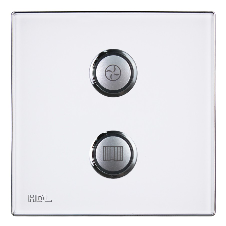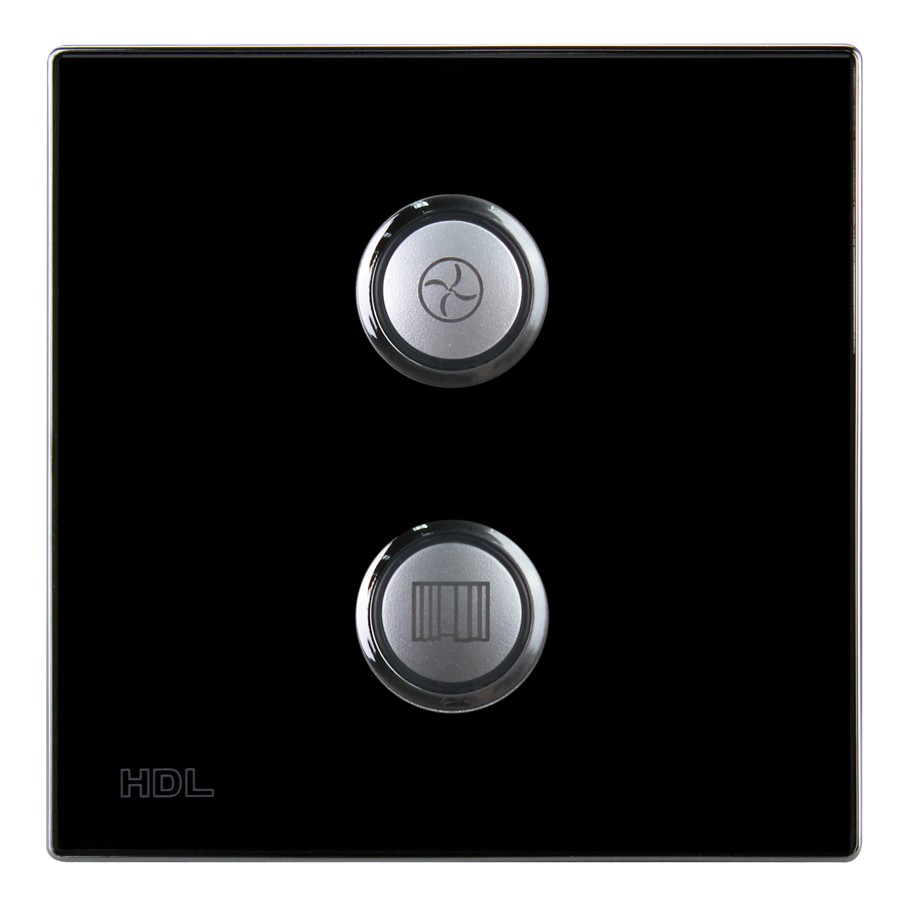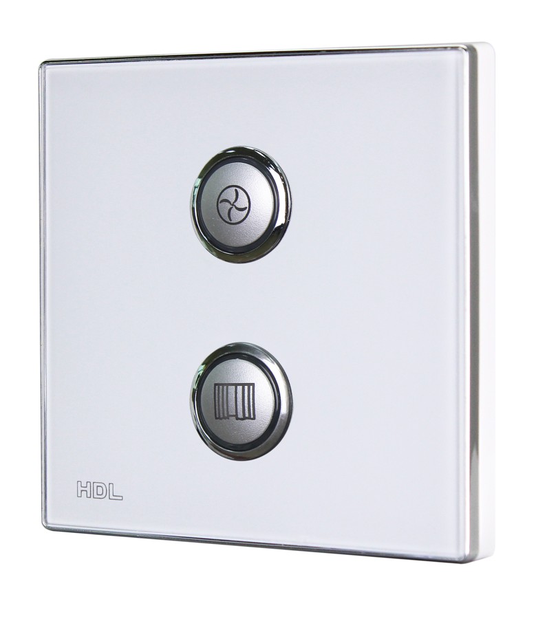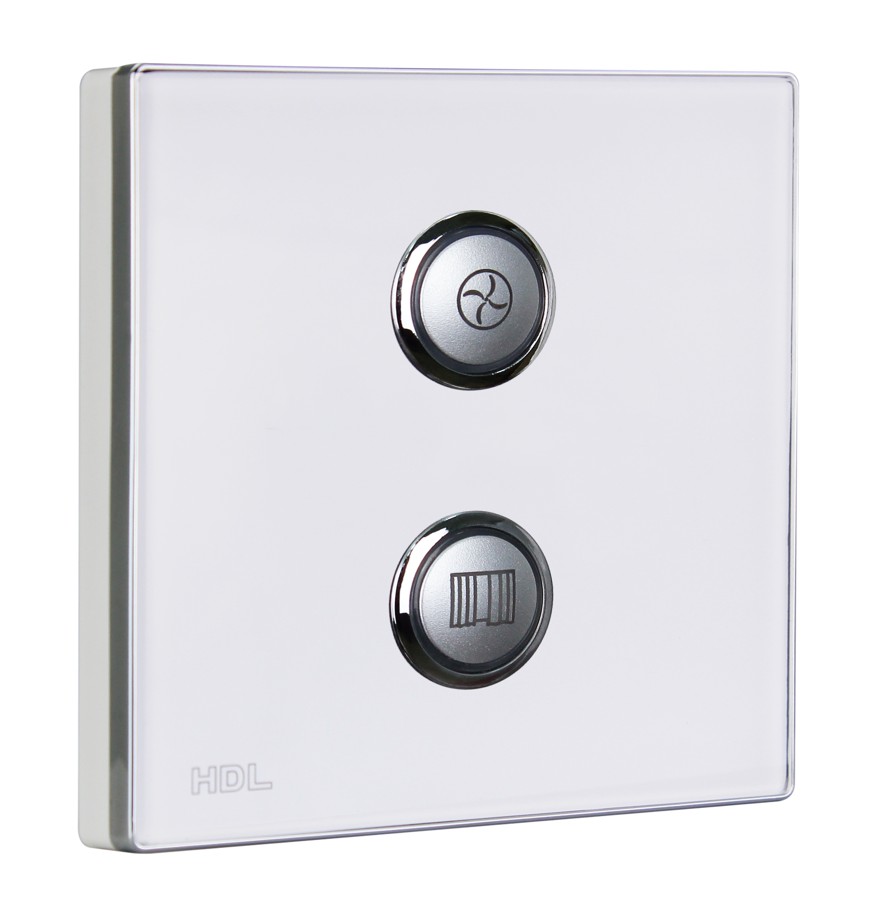 Bezdrátový ovládací panel řady iSense, 2 tlačítka,  barevně nastavitelné LED podsvícení, spínání a stmívání světel, ovládání závěsů, řízení scén a sekvencí, vyměnitelné čelo panelu,  gravírování symbolů za příplatek, vyžaduje některý z akčních členů, např. HDL-MPWPID00LN.18