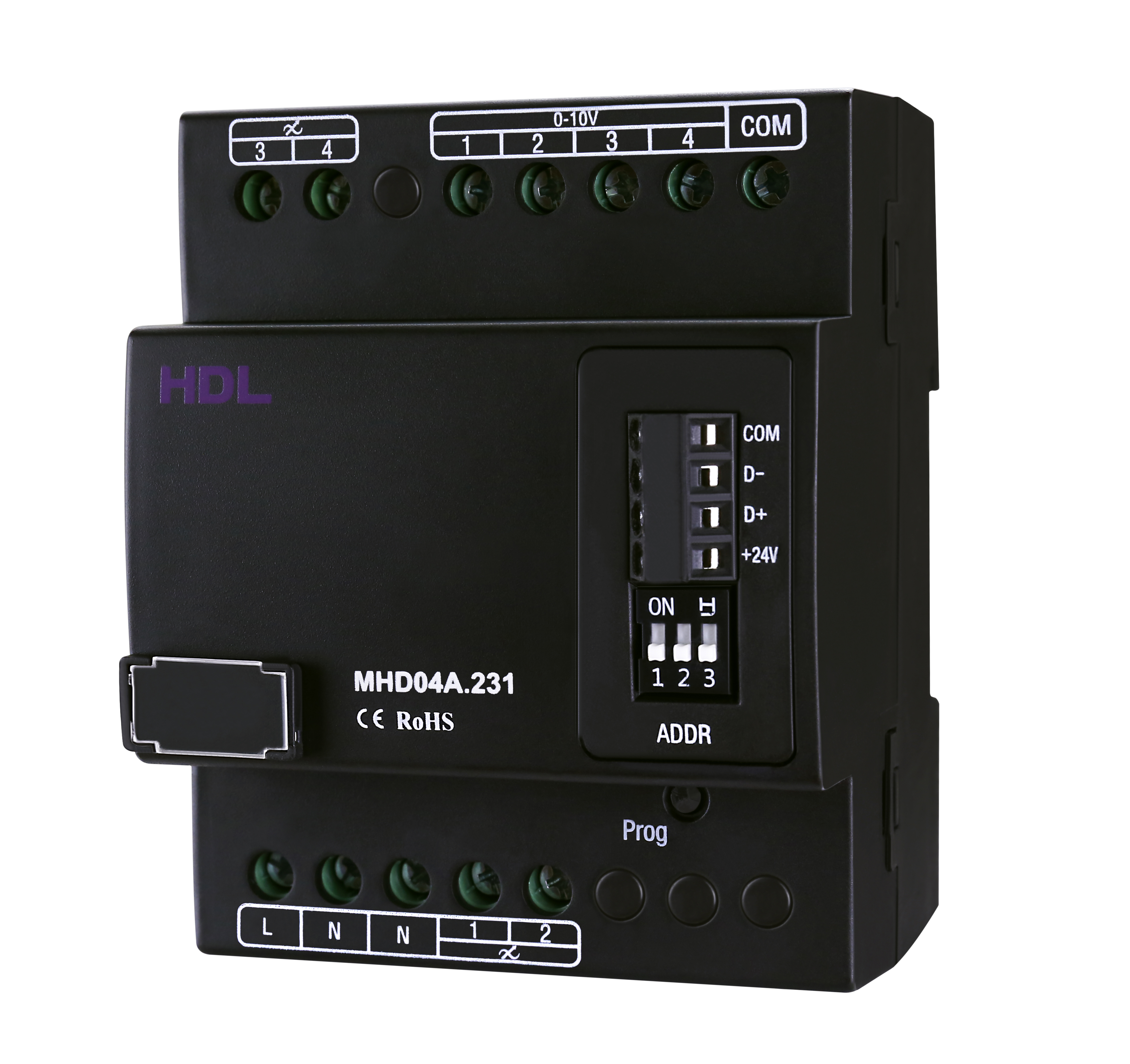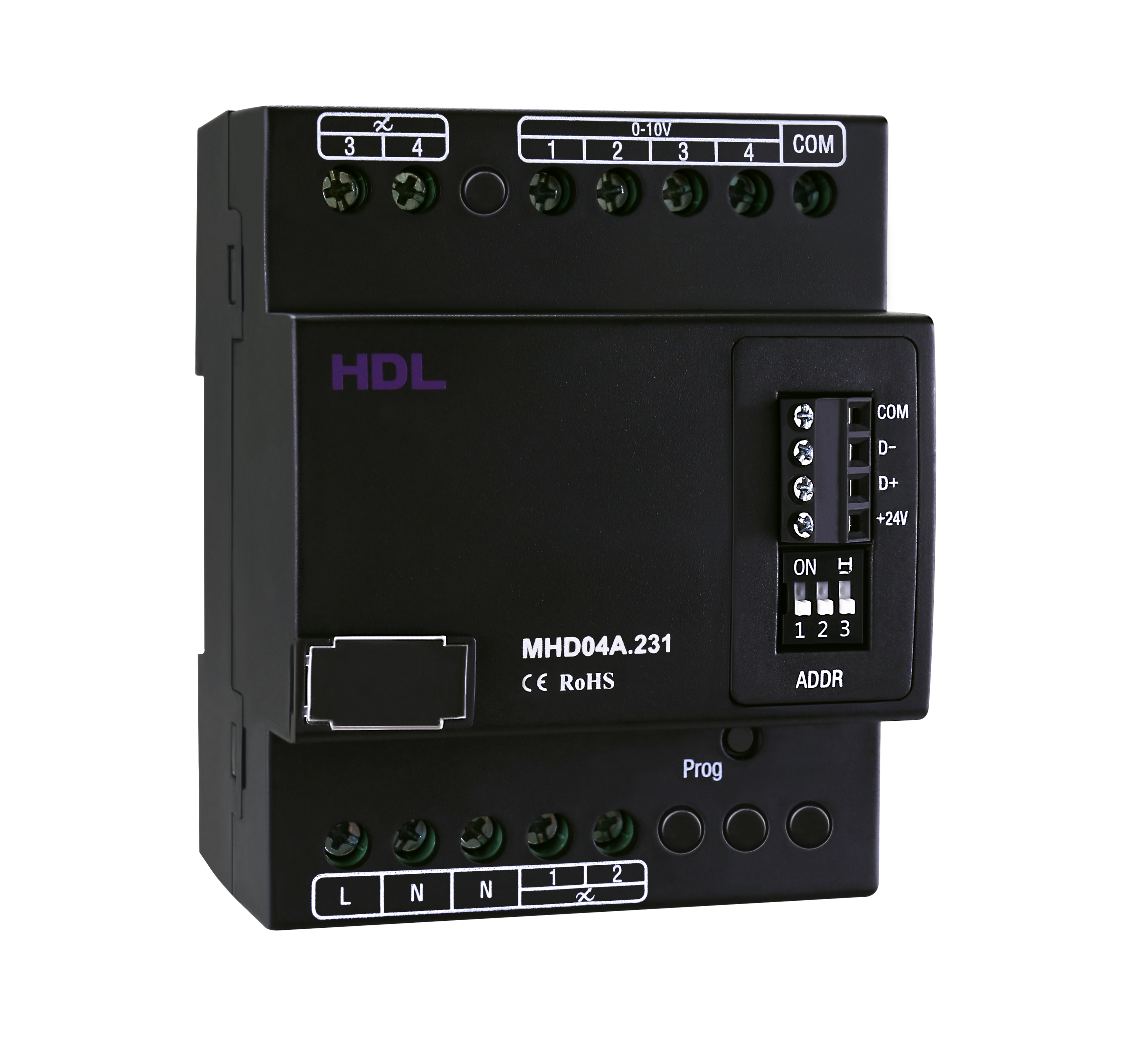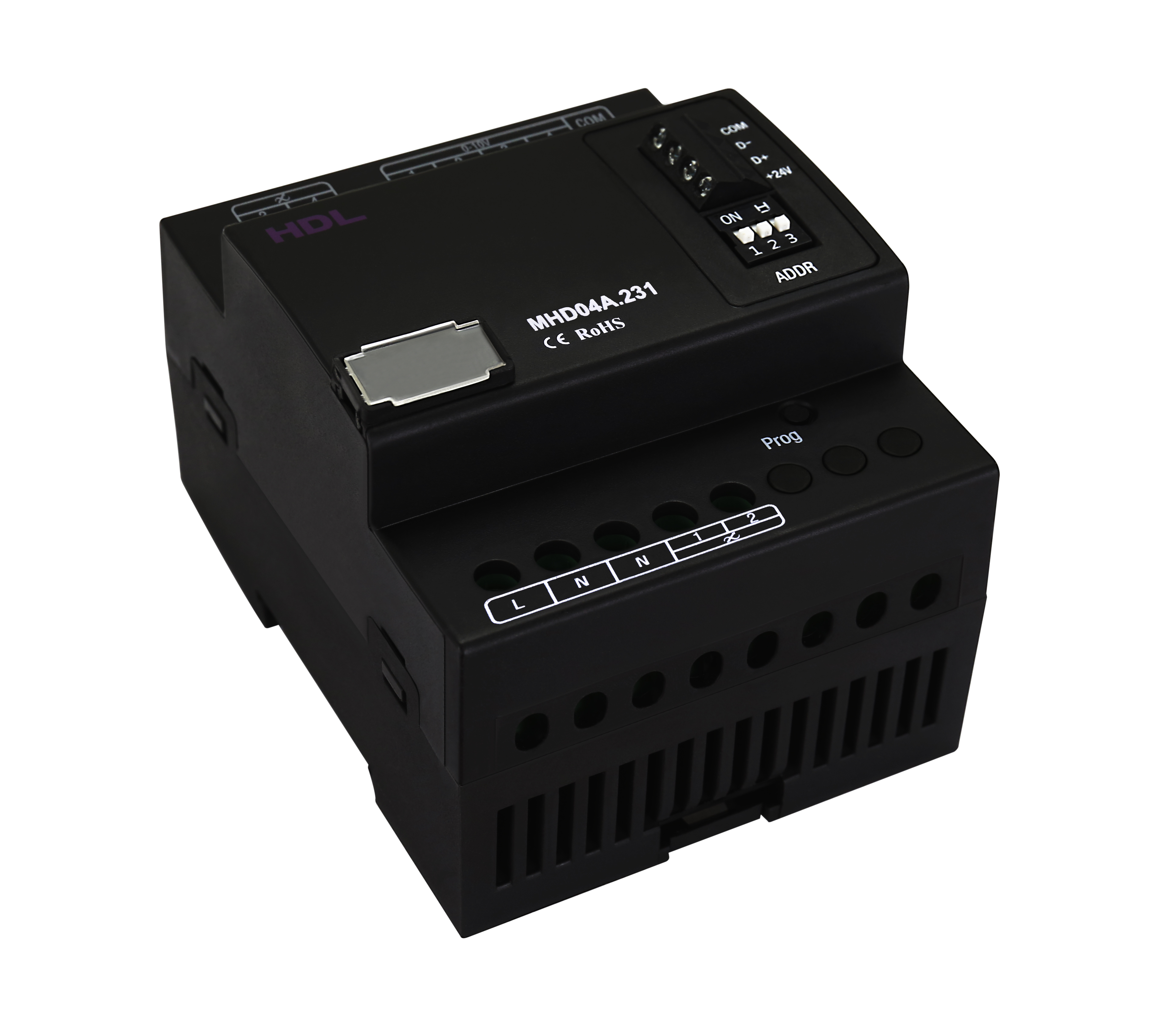 HDL-MHD04A.231 Modul univerzálního stmívače, 4 kanály x 0,5 A Modul univerzálního stmívače, 4 kanály x 0,5 A na DIN lištu. Rozšiřující modul ke kontroleru hotelového pokoje (tzn. výhradně pro hotelový systém). Obsahuje 4 silové výstupy spínané technologií MOSFET a 4 analogové výstupy řídícího napětí 0-10 V. Lze použít k přímému stmívání světelných spotřebičů nebo k řízení elektronických předřadníků. Parametry Model HDL-MHD04A.231 SKU 625181 Proud sběrnice 55 mA Šířka 72 mm Výška 90 mm Hloubka 66 mm Váha 160 g Materiál CustomOne CustomTwo CustomThree CustomFour CustomFive Kategorie slevy A 1 ks skladem skladem skladem Zboží můžete nakoupit skrze registrovaného partnera HDL. Dotaz na zboží Dokumenty k produktu PoP_HDL-MHD04-A-231