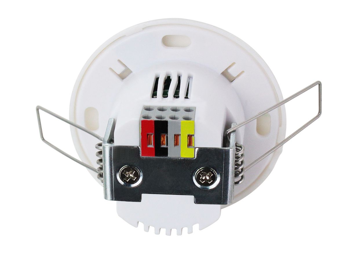 Čidlo stropní PIR, připojení na sběrnici Buspro, obsahuje čidlo PIR a čidlo intenzity osvětlení, 24 bloků vnitřní logiky k nastavení logických vazeb mezi vstupy zařízení, podpora bezpečnostního módu.