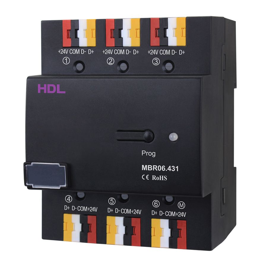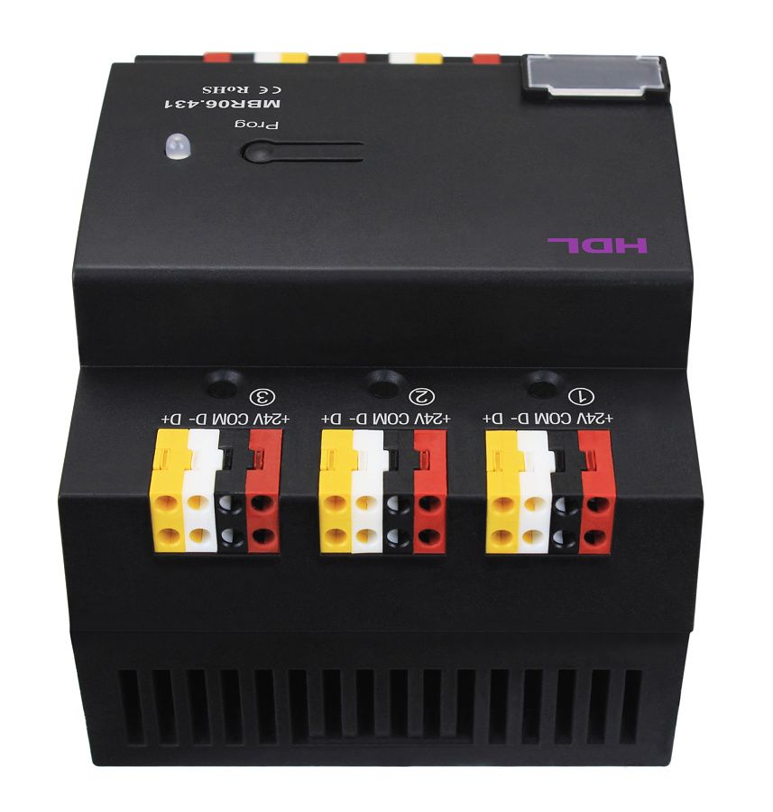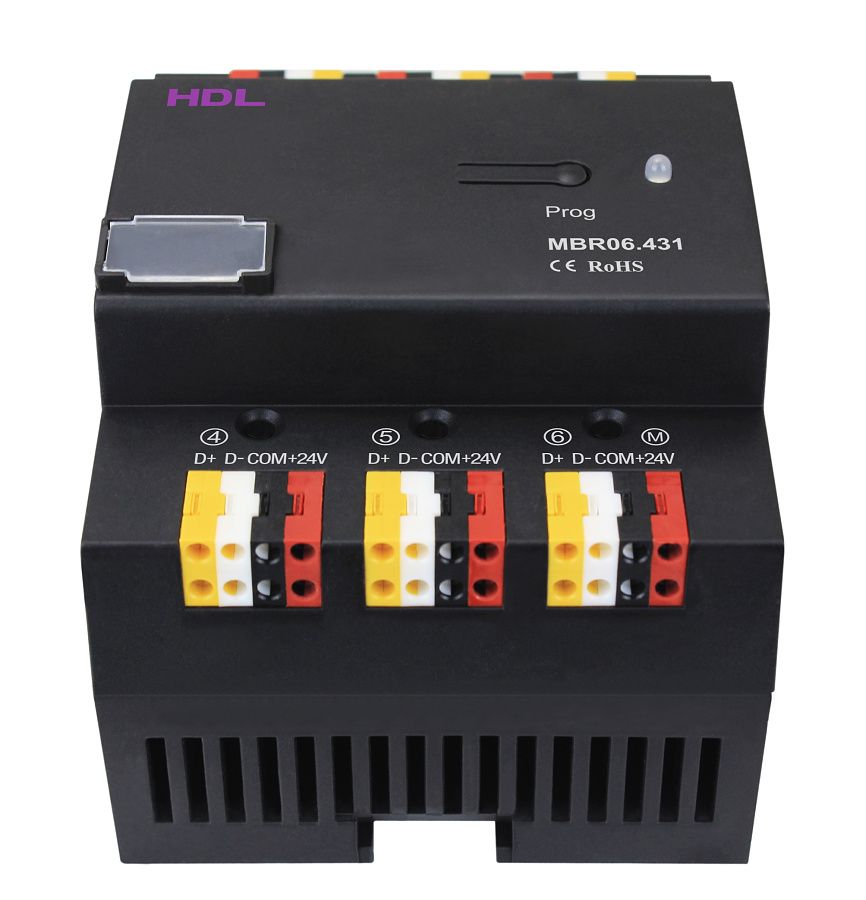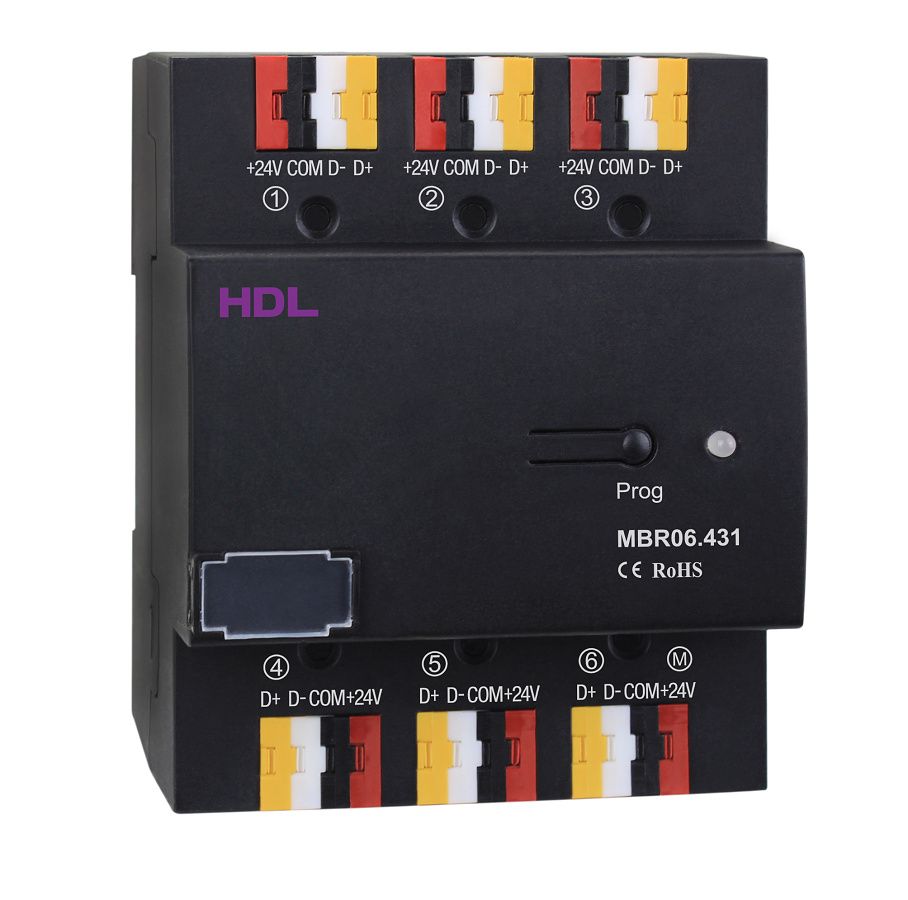 Modul přepínače pro 6 sítí Buspro, na DIN lištu, rozšíří síť Buspro propojením až 6 základních větví sběrnice Buspro, výsledná struktura může tedy obsahovat až 6 x 63 prvků na sběrnici, s galvanickým oddělením.