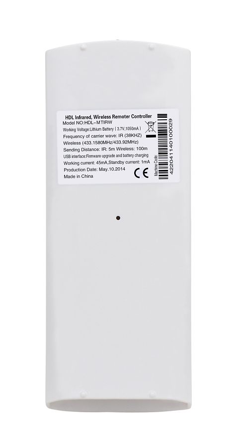 HDL-MTIRW Dálkový ovladač RF / IR s LCD Dálkový ovladač radiofrekvenční a infračervený, s LCD, RF přenos vyžaduje spolupráci s modulem HDL-MRF16.4C, zabudovaný IR programátor k uložení kódů konkrétní TV, DVD, klimatizace, nabíjení pomocí USB portu, aktualizace FW pomocí USB portu z PC. Parametry Model HDL-MTIRW SKU 422031 Proud sběrnice mA Šířka 60 mm Výška 155 mm Hloubka 24 mm Váha 115 g Materiál CustomOne CustomTwo CustomThree CustomFour CustomFive Kategorie slevy A 5 ks skladem skladem skladem Zboží můžete nakoupit skrze registrovaného partnera HDL. Dotaz na zboží Dokumenty k produktu HDL-MTIRW-CZ PoP_HDL-MTIRW