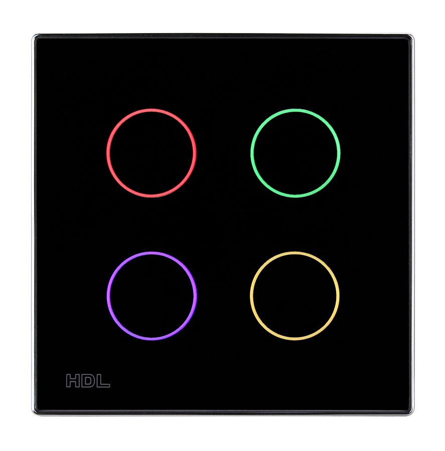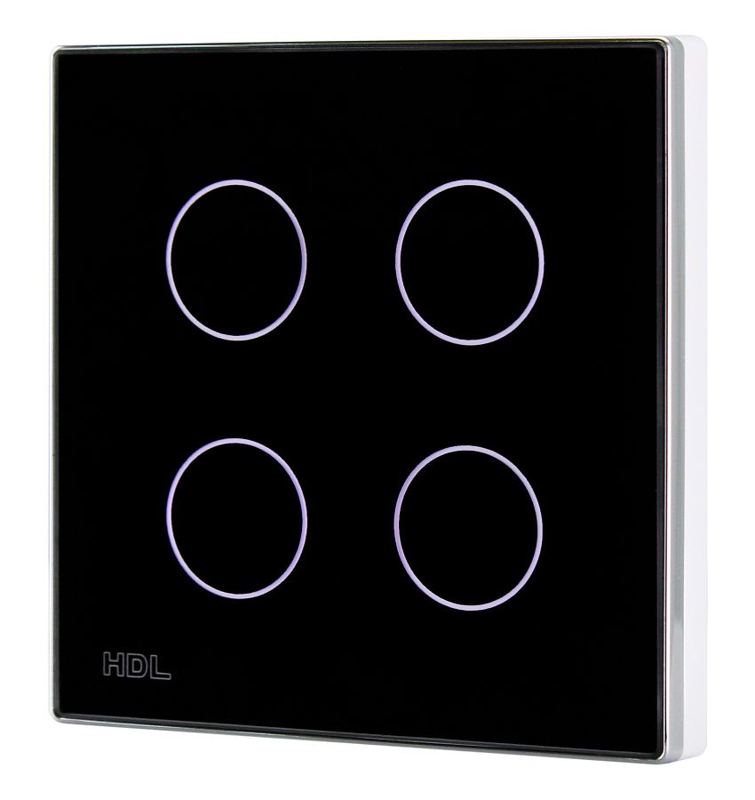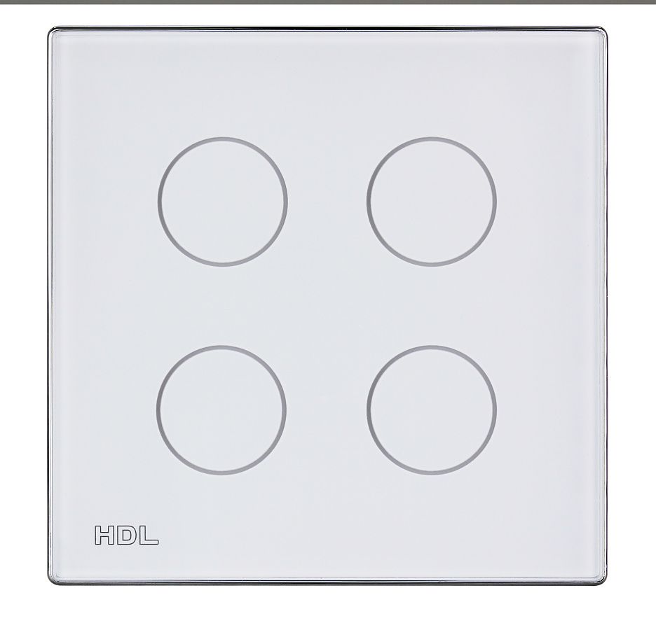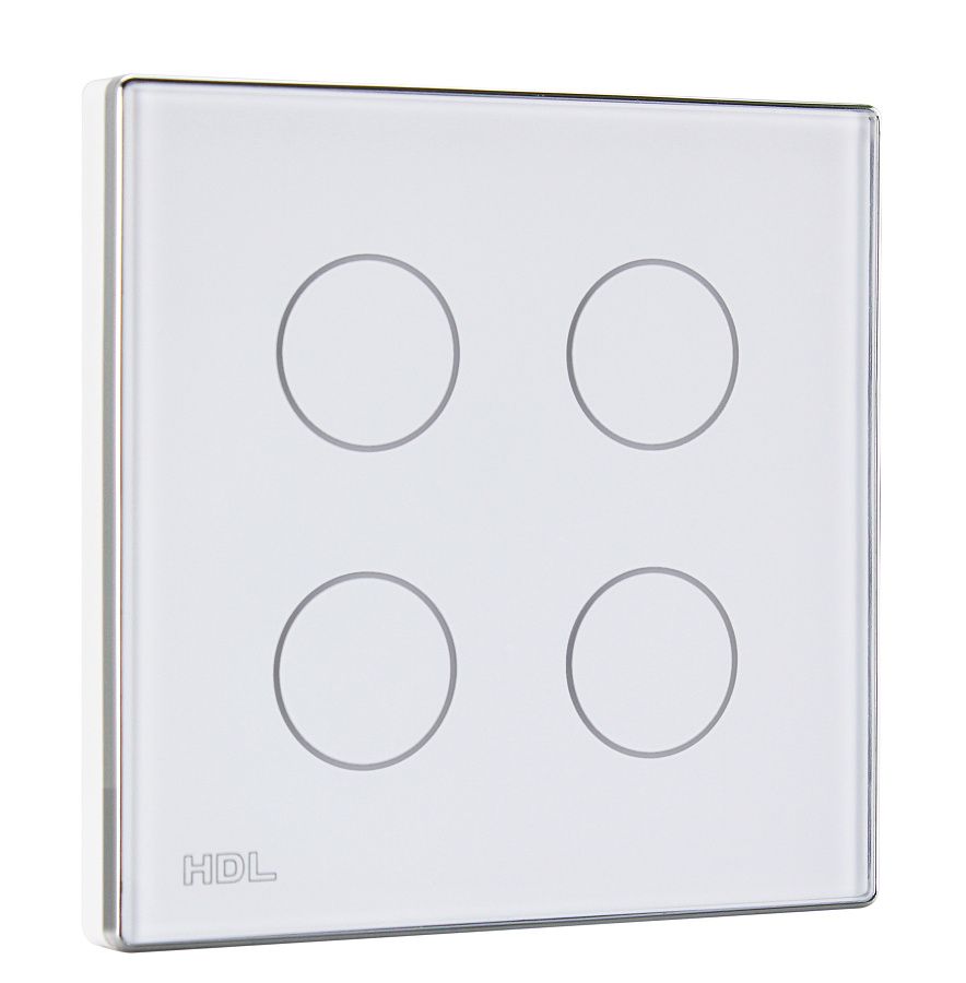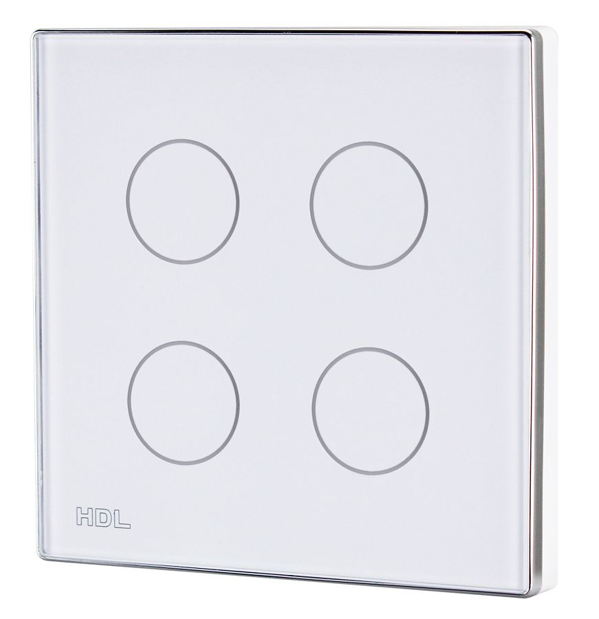 Ovládací panel řady iTouch, 4 tlačítka barevně nastavitelné LED podsvícení, spínání a stmívání světel, ovládání závěsů, řízení scén a sekvencí, vyměnitelné čelo panelu, čidlo teploty, volitelně IR ovladač, vyžaduje sběrnicovou spojku HDL-MPPI.48.