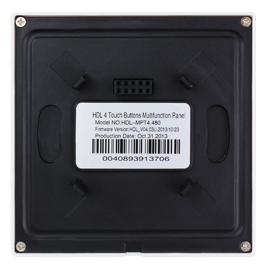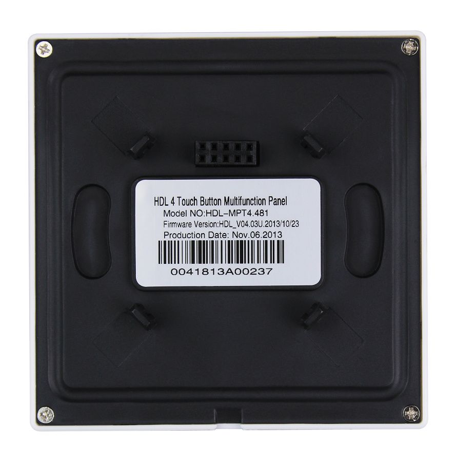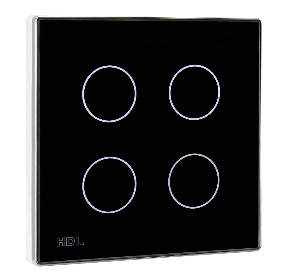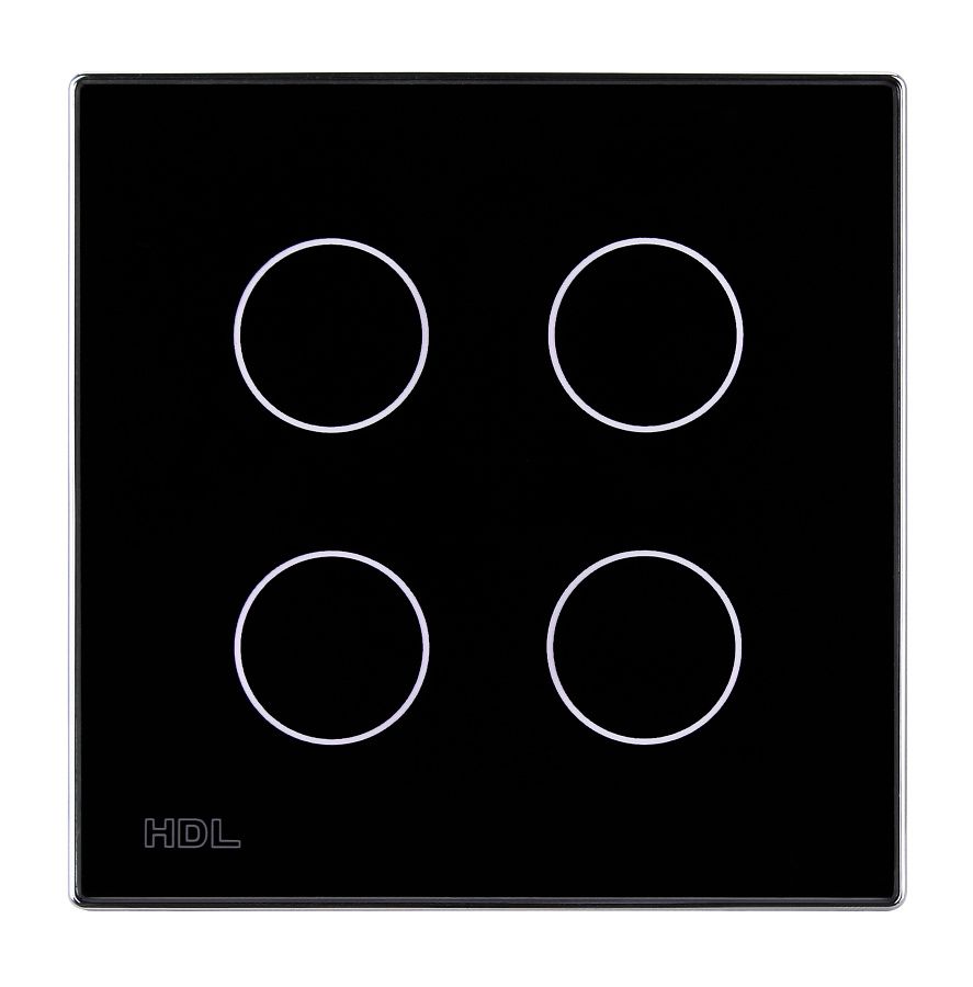 Ovládací panel řady iTouch, 4 tlačítka barevně nastavitelné LED podsvícení, spínání a stmívání světel, ovládání závěsů, řízení scén a sekvencí, vyměnitelné čelo panelu, čidlo teploty, volitelně IR ovladač, vyžaduje sběrnicovou spojku HDL-MPPI.48.