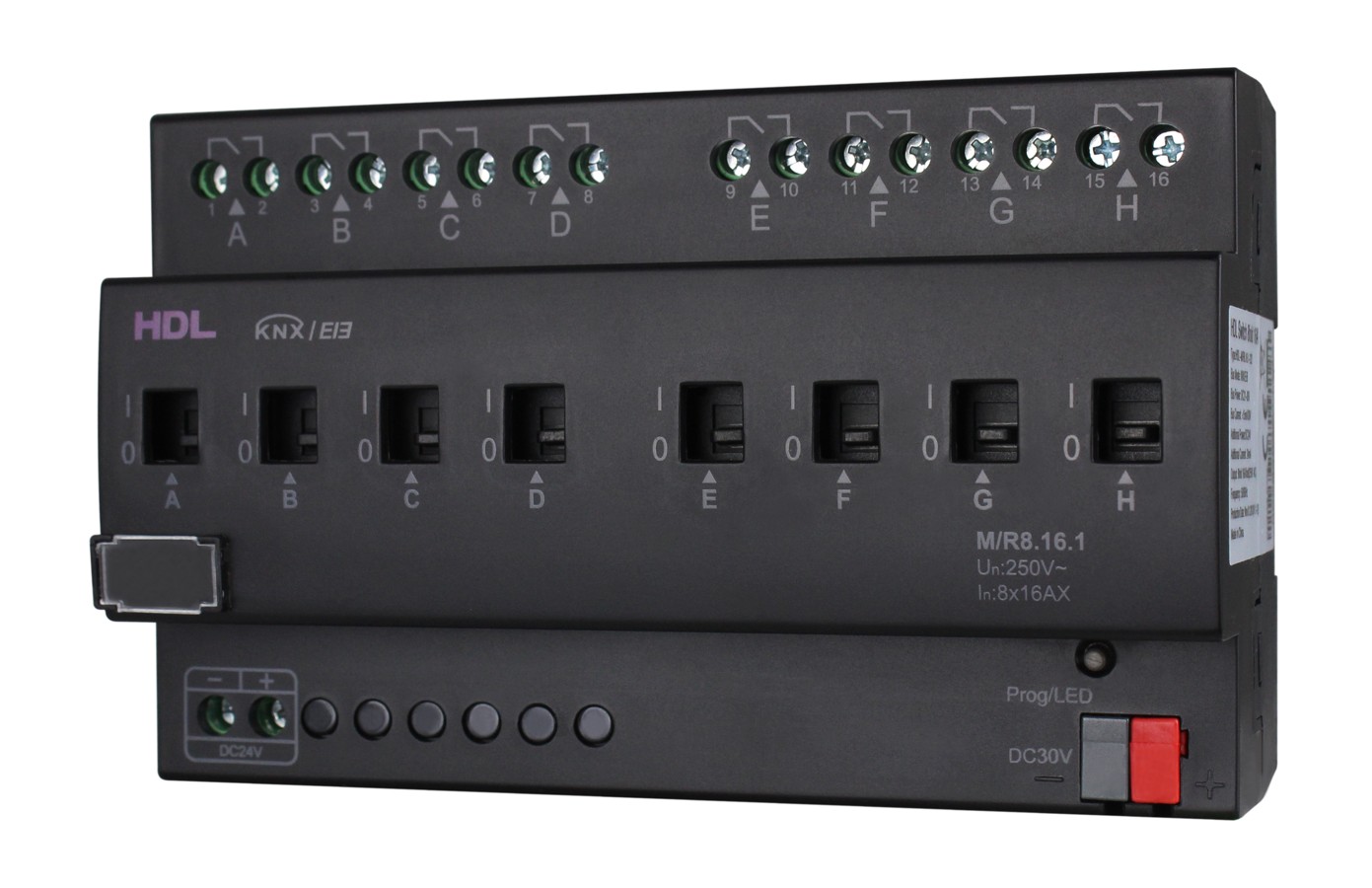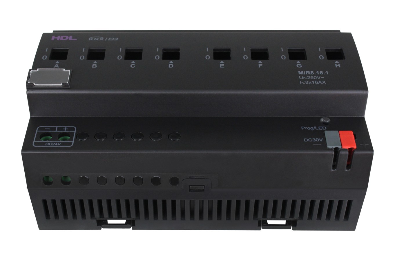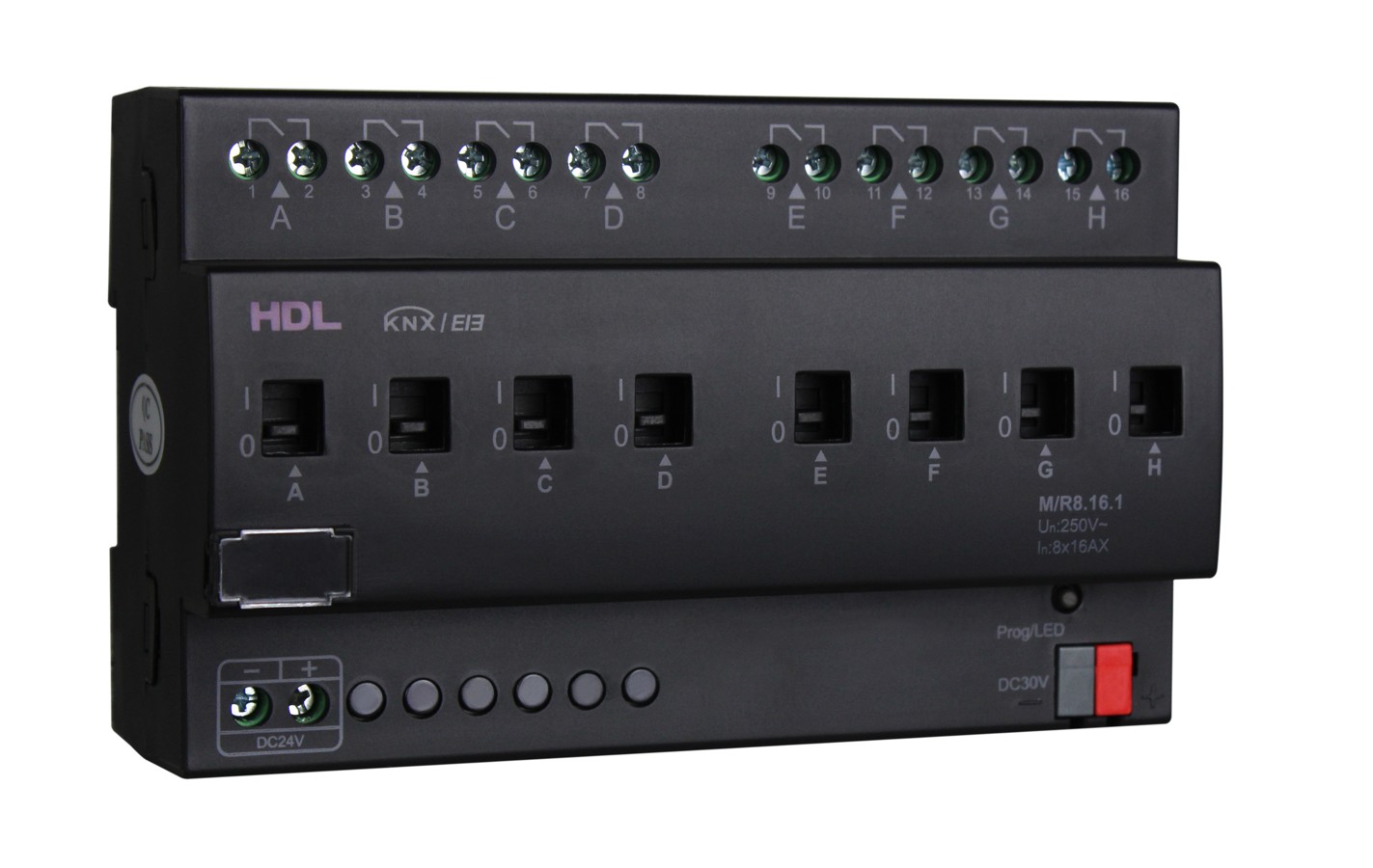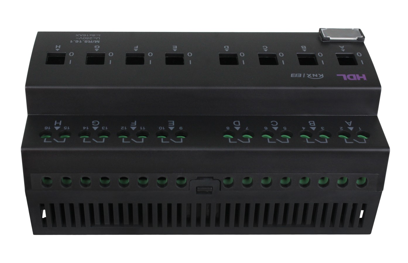 HDL-M/R8.16.1 Akční člen spínací 8násobný, 16 A Řadový, bezpotenciálové kontakty s vysoko proudovými magnetickými relé ke spínání 8 nezávislých zátěží prostřednictvím sběrnice KNX, každý kontakt lze napájet samostatně, každý kanál je opatřen optickým ukazatelem stavu s možností ručního spínání. Parametry Model HDL-M/R8.16.1 SKU 435071 Proud sběrnice 15 mA Šířka 144 mm Výška 90 mm Hloubka 66 mm Váha 577 g Materiál CustomOne CustomTwo CustomThree CustomFour CustomFive Kategorie slevy A 6 ks skladem skladem skladem Zboží můžete nakoupit skrze registrovaného partnera HDL. Dotaz na zboží Dokumenty k produktu Katalogový list M/Rx.16.1_CZ_v1 Product manual M/Rx.16.1 Appl. program information M/Rx.16.1_(V1.0) Application program M/Rx.16.1_(V1.2) PoP_HDL-M-R8-16-1