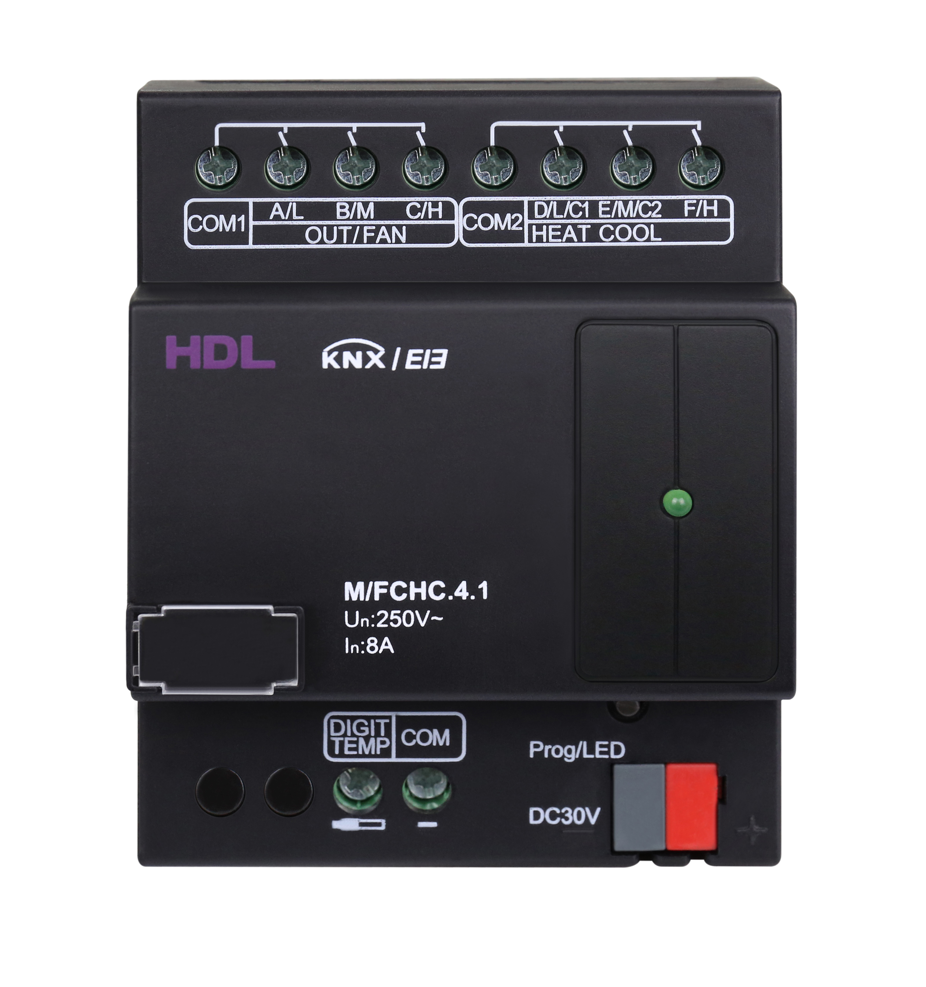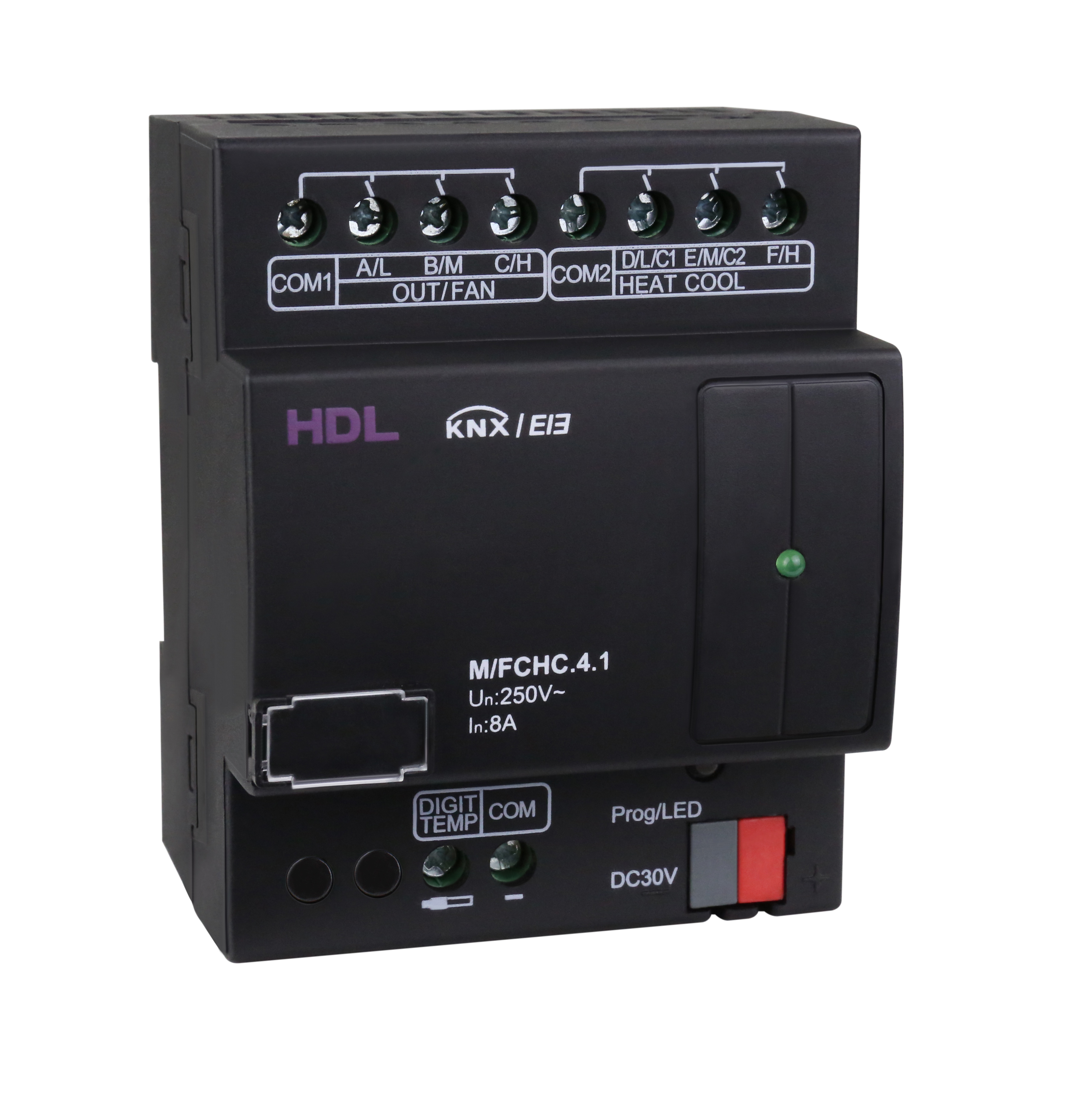 HDL-M/FCHC.4.1 FCHC Actuator FCHC Actuator, Din Rail Mount,it is for control air condition, fan, compressor,and floor heating, It can be work in conjunction with different panel. The channels function is set via ETS software. It supports up to 7 digital temperature sensors. Parameters Model HDL-M/FCHC.4.1 SKU 635051 Bus Power 20 mA Width 72 mm Height 90 mm Depth 66 mm Weight 168 g Material CustomOne CustomTwo CustomThree CustomFour CustomFive Discount category A 21 pcs in stock in stock in stock You can buy these goods through registered HDL partner. Question to product Related Documents Data sheet M/FCHC.4.1_EN Appl. program information M/FCHC.4.1_(V1.0) Application program M/FCHC.4.1_(V1.0) Related products TS/C 1.0 2.5 Meter Digital Thermometer for FCU Actuator